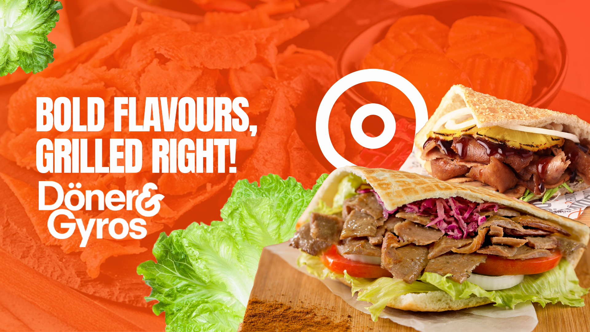 Wrapped in a crispy flatbread and piled high with fresh lettuce, tomato, red cabbage and onion, topped with our custom blend sauces.